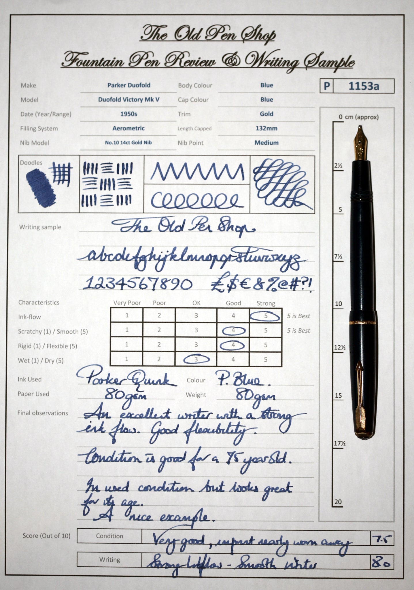 Parker Duofold Victory Mk V-Blue with No.10 14ct Gold Nib-P1153a